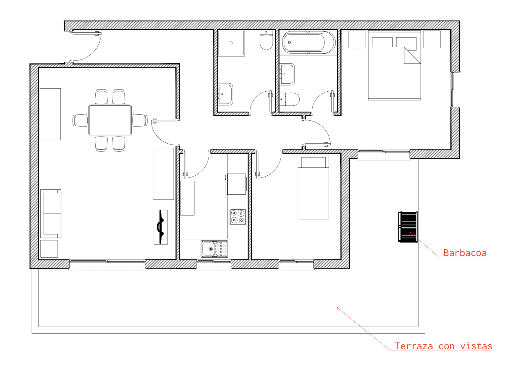 En este caso el cliente quiere destacar la terraza exterior y la cómoda distribución de su apartamento.